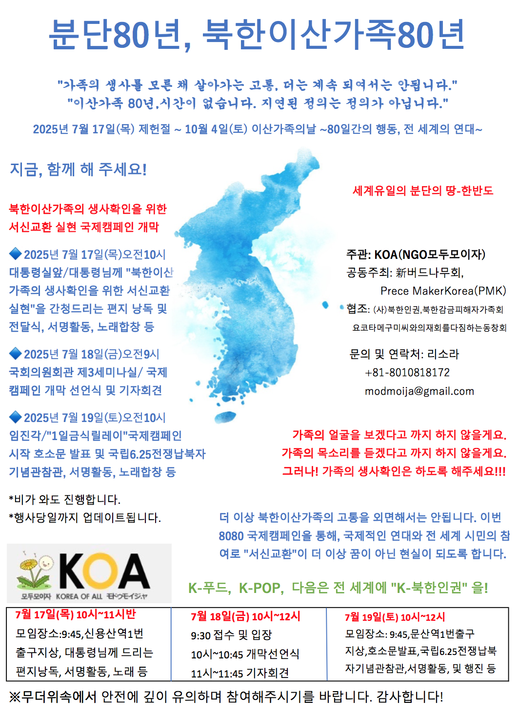 이산가족의 생사확인을 위한 서신교환 정상화 실현 80일간(2025.7.17~10.4)의 국제캠페인