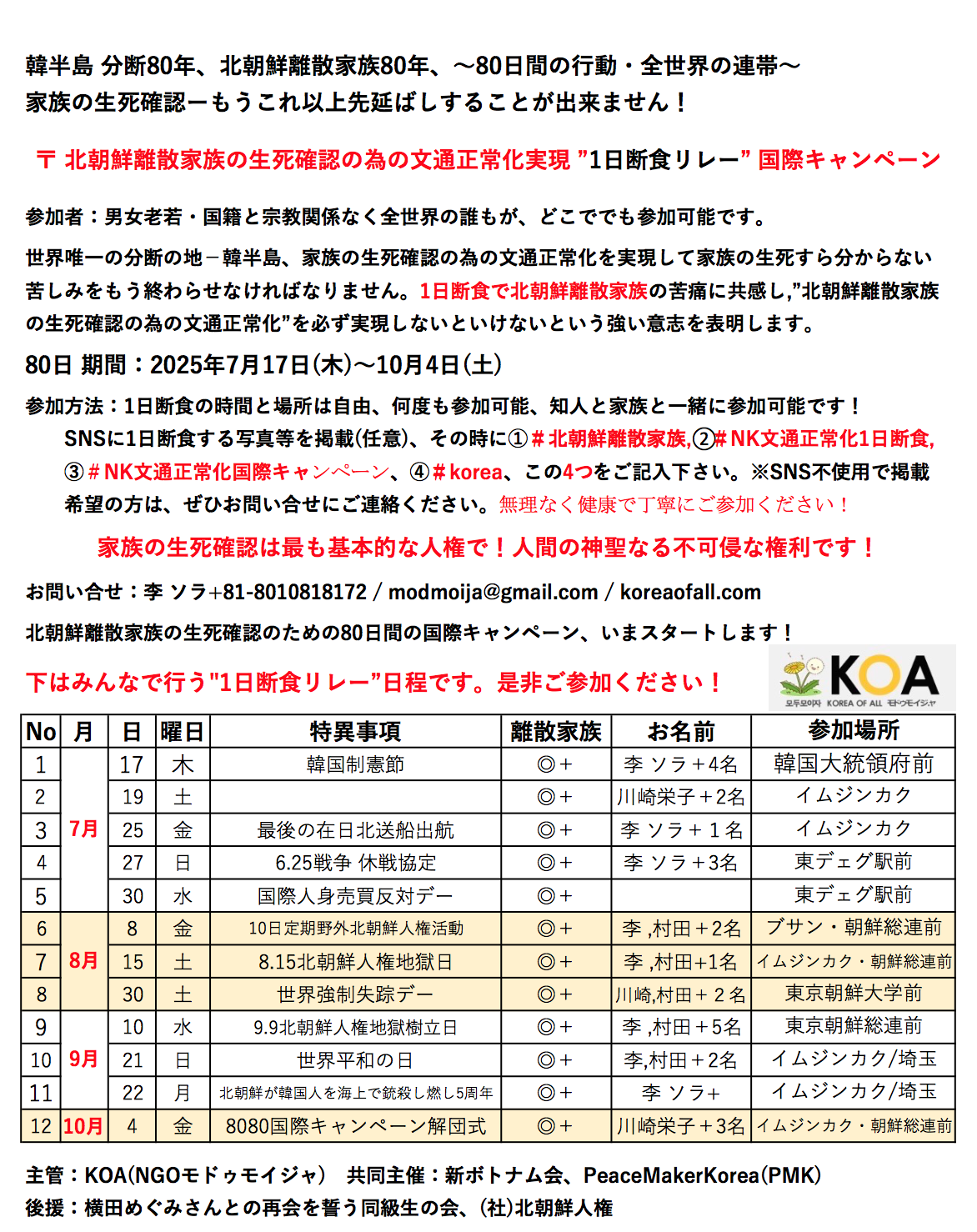 이산가족의 생사확인을 위한 서신교환 정상화 실현 80일간(2025.7.17~10.4)의 국제캠페인